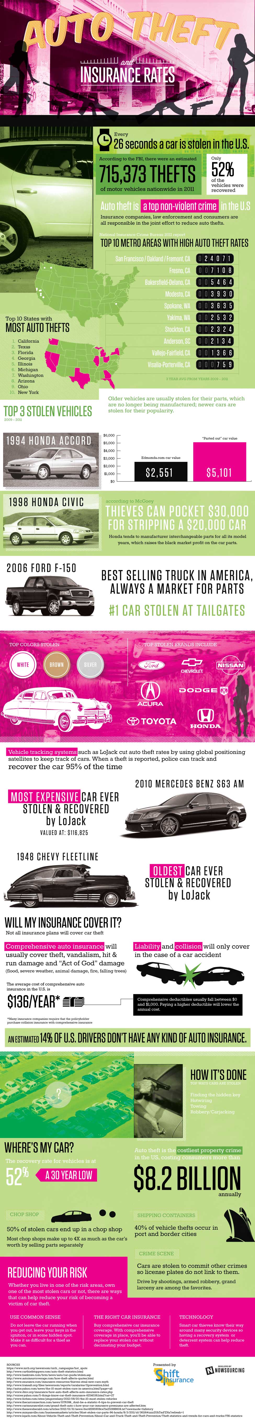 Every 26 seconds a car is stolen in the United States. Is your car safe? Check out the infographic below to learn about car theft in the U.S. and how it related to insurance rates.