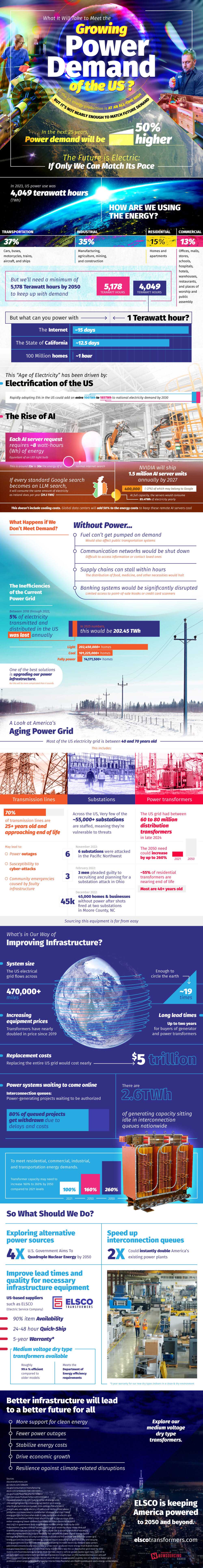 Learn more about how what keeping up with energy demand means to the power grid in the following infographic, courtesy of ELSCO.